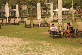 After that, we went back to Penampang and decided to go for a drive somewhere in Sepangar. Me and the siblings beg dad to bring us to Rasa Ria Resort cause it's beautiful there and we brought Mr. Canon together. Woot! Woot!